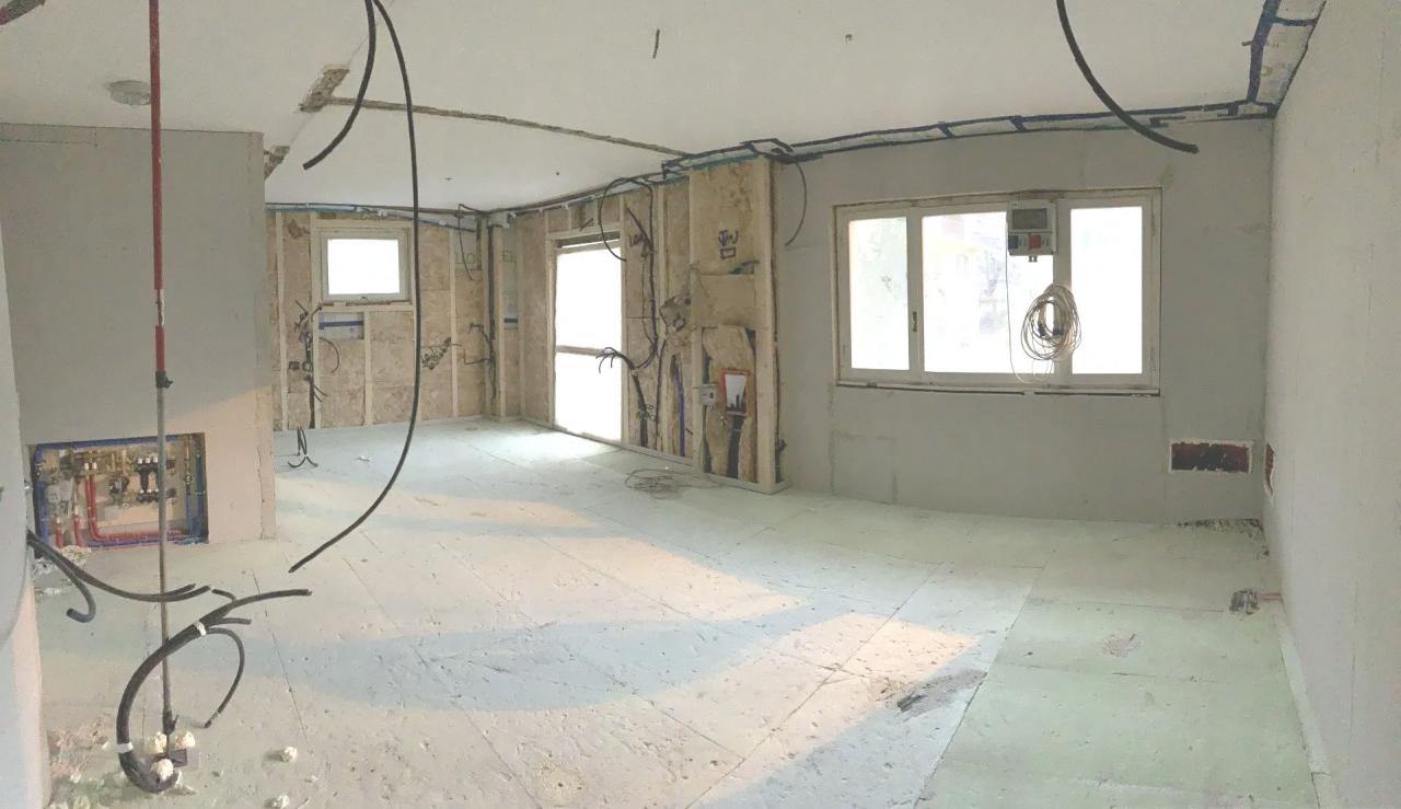 Si presenta poi successivamente lo stato di avanzamento dei lavori una volta parzialmente ultimate la pareti e realizzato il sottofondo a basso spessore ed elevata trasmittanza a copertura del riscaldamento a pavimento.