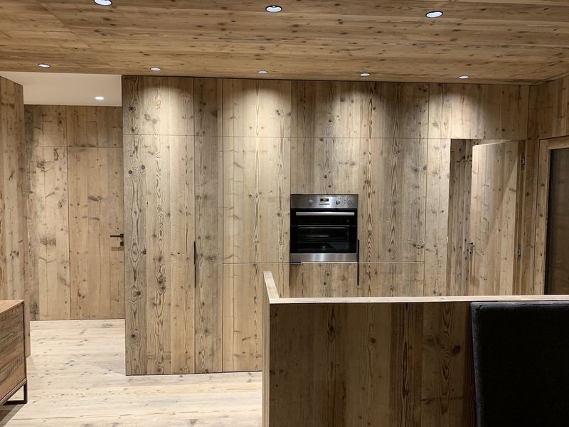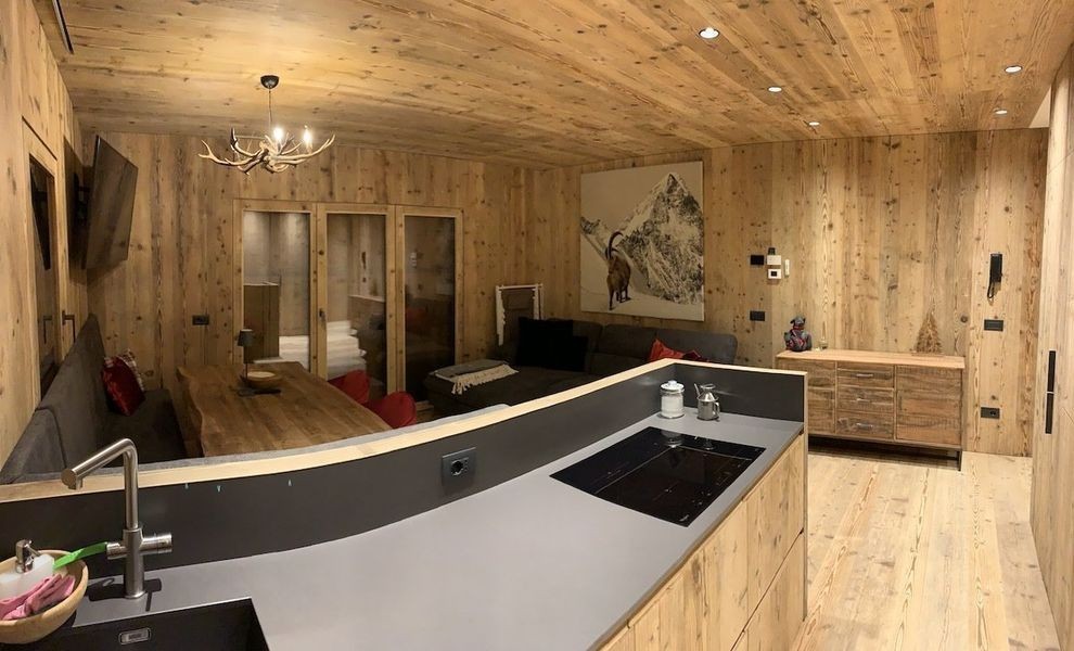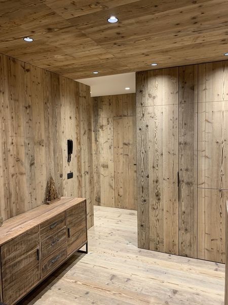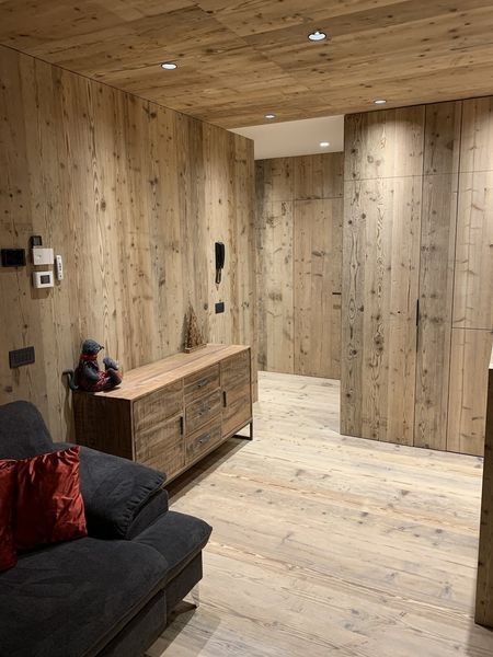 All'interno di un condominio nel comune di Bormio, abbiamo eseguito una ristrutturazione completa di un appartamento. Le tecnologie di esecuzione sono le più moderne: stratigrafie con materiali "a secco", con coibentazione eseguita con isolanti termoriflettenti a basso spessore e pareti in cartongesso rinforzato con interposta lana di roccia. Il rivestimento in legno è stato eseguito in collaborazione con Bottega del Legno di Valdidentro.