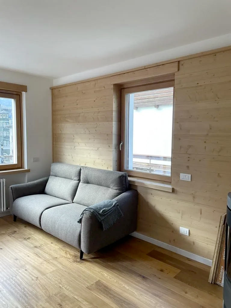 Per migliorare il comfort interno e le prestazioni energetiche dell’involucro edilizio, è stato posato un cappotto di isolante EPS interno, lungo le pareti perimetrali, insieme ad un'altra controparete riempita di lana di roccia. Tutti gli infissi sono stati smontati e smaltiti, in quanto antichi e non efficienti da un punto di vista energetico. Per i nuovi serramenti è stato scelto un triplo vetro, accoppiato ad un telaio di legno. Approfondendo le finiture, per quanto riguarda la pavimentazione ed il battiscopa delle zone letto e giorno è stato scelto un parquet di elevatissima qualità e resa estetica, mentre per bagno e cucina è stato scelto un gres porcellanato effetto marmo. L'appartamento finito, come possiamo vedere grazie alla serie di foto qui sotto, risulta efficiente, ben dettagliato e accogliente.
