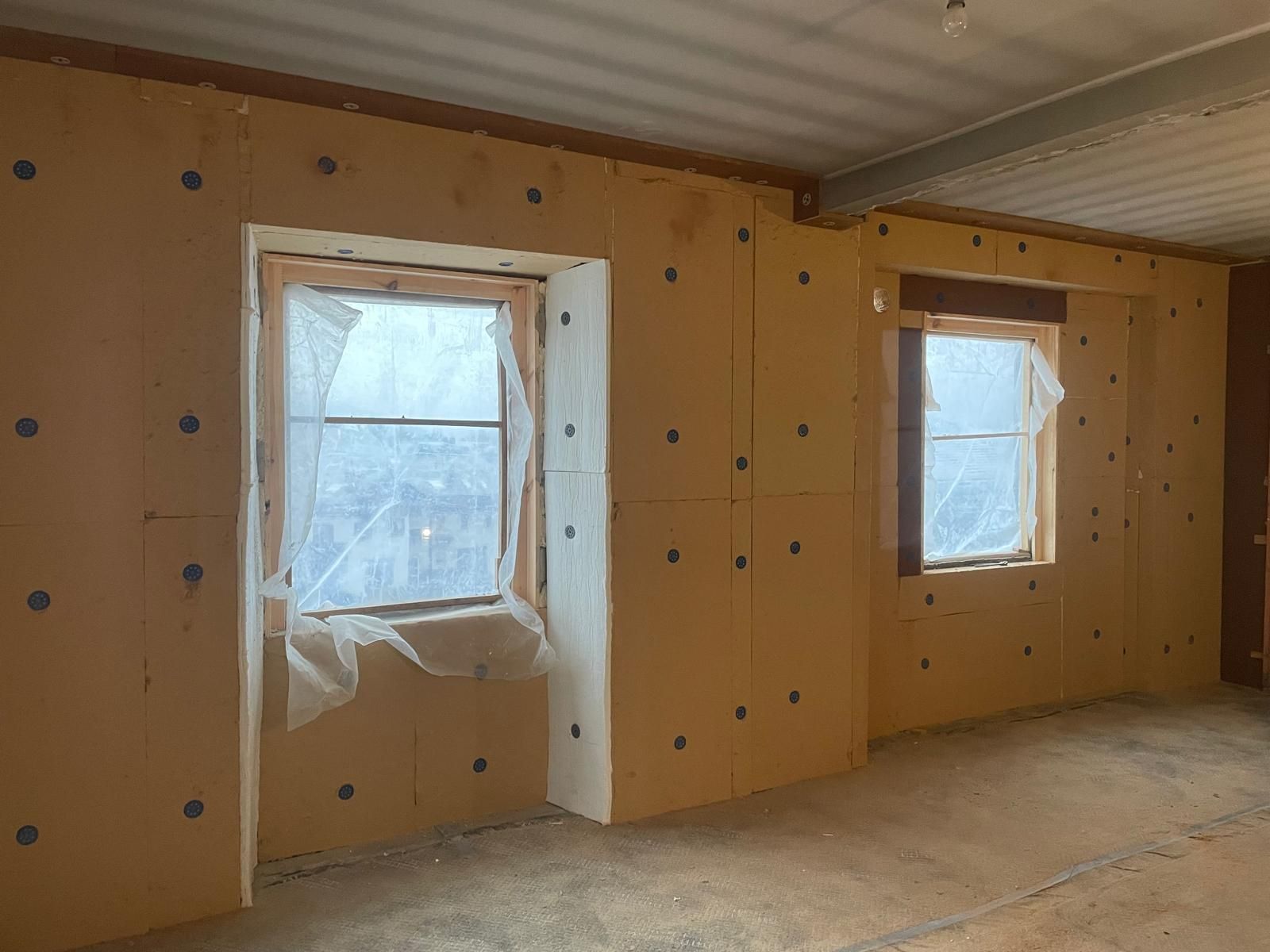 Dopo un'attenta analisi costi-benefici, abbiamo optato per una soluzione sostenibile ed economicamente vantaggiosa: l'applicazione di un cappotto interno in fibra di legno, rivestito con uno strato di freno al vapore. Questo approccio garantisce non solo un’ottima performance termica, ma anche un buon equilibrio tra costi e benefici. È importante sottolineare che il cappotto interno è stato posato in modo da garantire la continuità del sistema, con un’attenzione particolare alla zona del soffitto per eliminare il ponte termico.